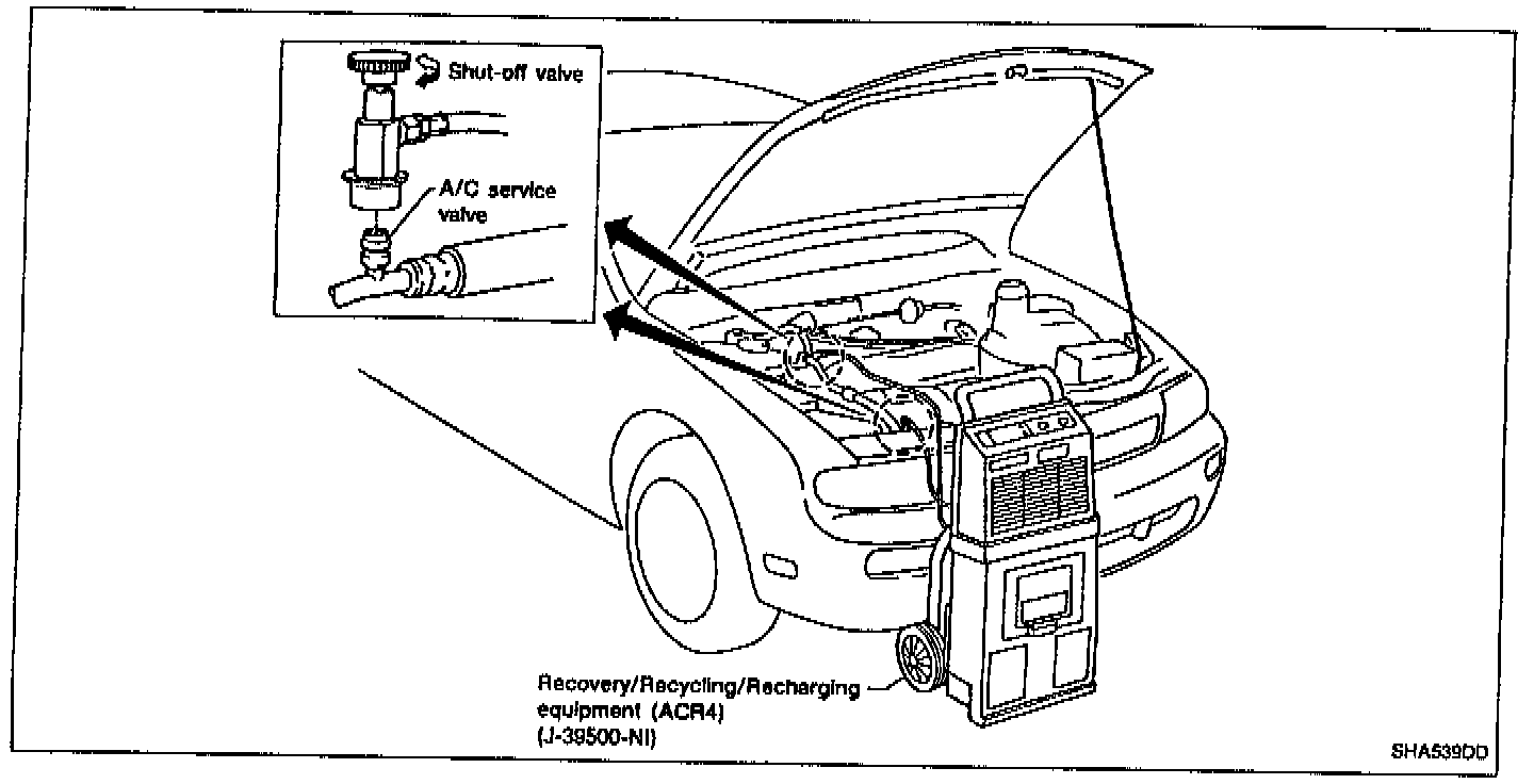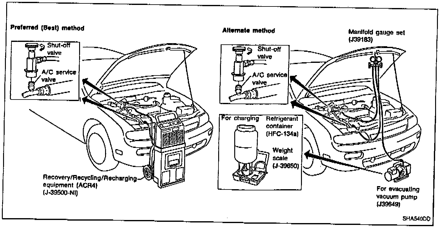 Avoid breathing A/C refrigerant and lubricant vapor or mist. Exposure may irritate eyes, nose and throat. Remove HFC-134a (R-134a) from A/C system using certified service equipment meeting requirements of SAE J221O [HFC-134a (R-134a) recycling equipment or J22O9 [HFC-134a (R-134a) recovery equipment]. If accidental system discharge occurs, ventilate work area before resuming service. Additional health and safety information may be obtained from refrigerant and lubricant manufacturers.