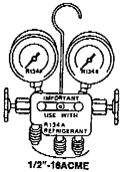 Be certain that the gauge face indicates R-134a or 134a. Be sure the gauge set has 1/2"-16 ACME threaded connections for service hoses. Confirm the set has been used only with refrigerant HFC-134a (R-134a) and specified lubricants.