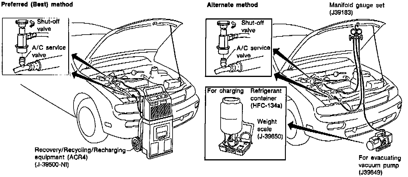 Avoid breathing A/C refrigerant and lubricant vapor or mist. Exposure may irritate eyes, nose and throat. Remove HFC-134a (R-134a) from A/C system using certified service equipment meeting requirements of SAE J2210 [HFC-134a (R-134a) recycling equipment] or J2209 [HFC-134a (R-134a) recovery equipment]. If accidental system discharge occurs, ventilate work area before resuming service. Additional health and safety Information may be obtained from refrigerant and lubricant manufacturers.
