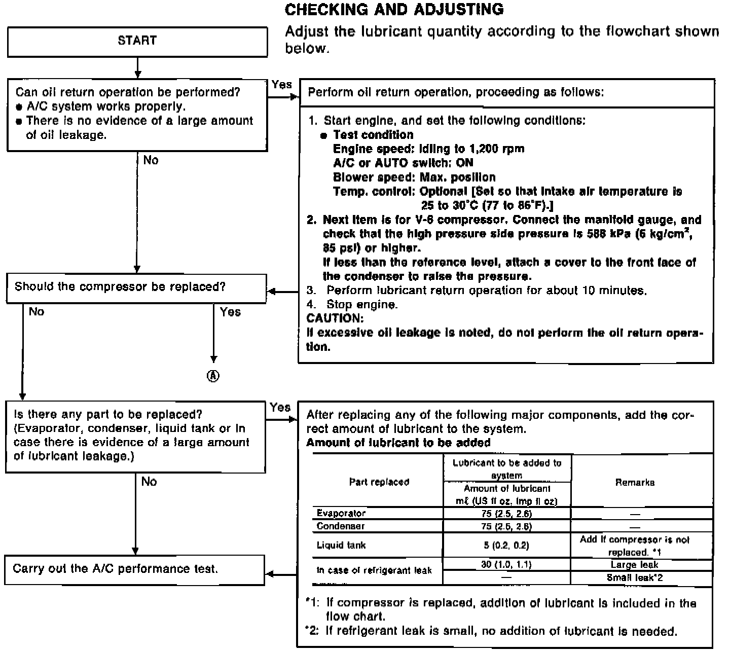 The lubricant used to lubricate the compressor circulates through the system with the refrigerant. Add lubricant to compressor when replacing any component or after repairing a large gas leak. It is important to maintain the specified amount. If lubricant quantity is not maintained properly, the following malfunctions may result: