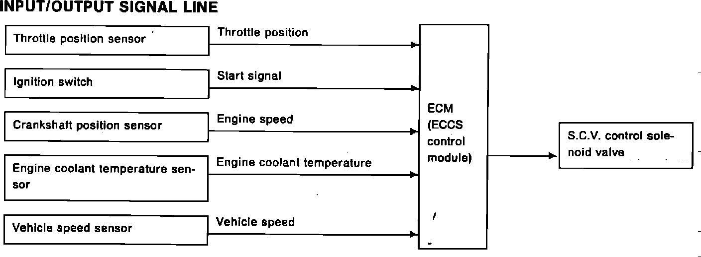 The ECM supplies the ground circuit to the SCV solenoid. When the solenoid is grounded, vacuum is allowed to pass the Swirl Control Actuator and the Swirl Valves are closed. When the solenoid ground is cut, the Swirl Control Actuator vacuum is lost and the Swirl Valves are opened.