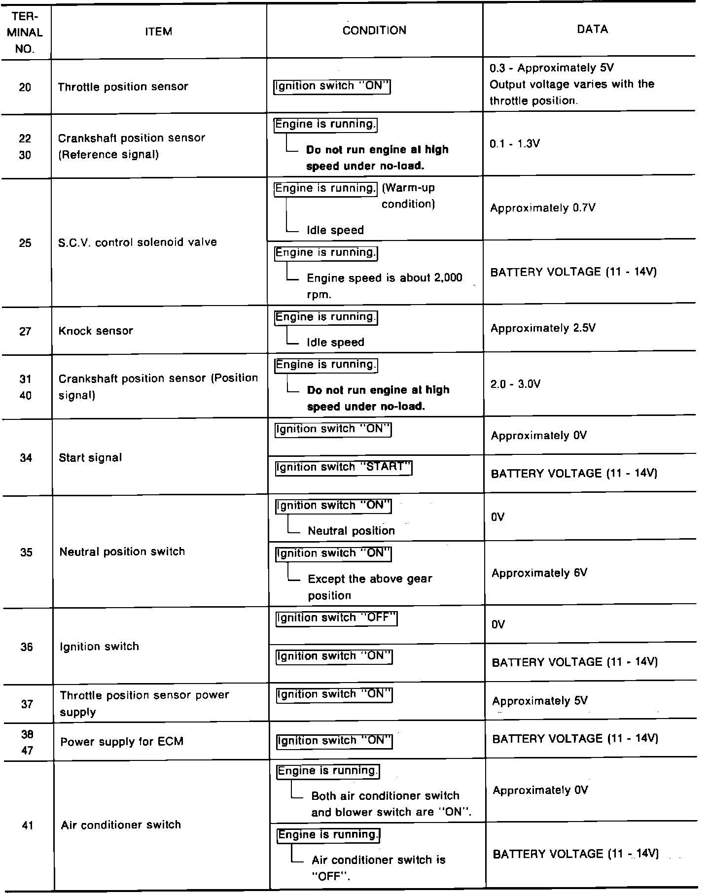 NOTE: Testing of circuit voltages can be done at the ECM connector by CAREFULLY backprobing the connector. Use a high-quality digital DVOM.