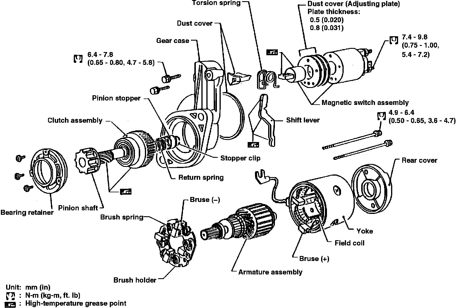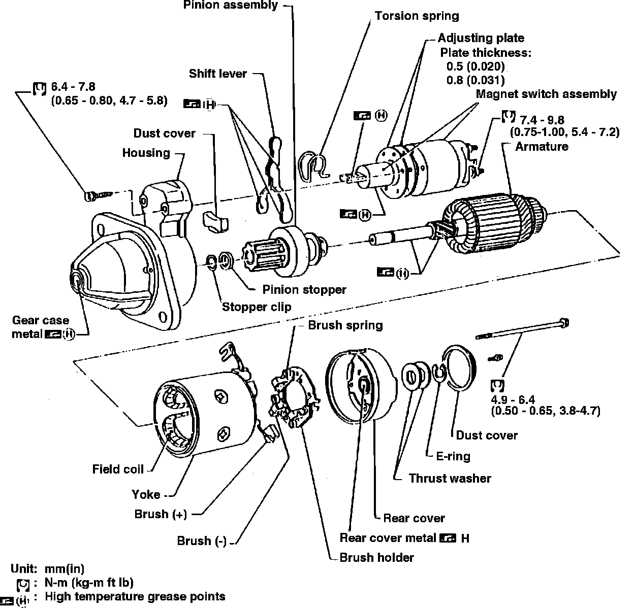 Nissan starters are of two types, direct drive and gear reduction. The direct drive starter Fig. 1 is equipped with an overrunning clutch type starter drive. A solenoid switch is mounted on the starter motor.