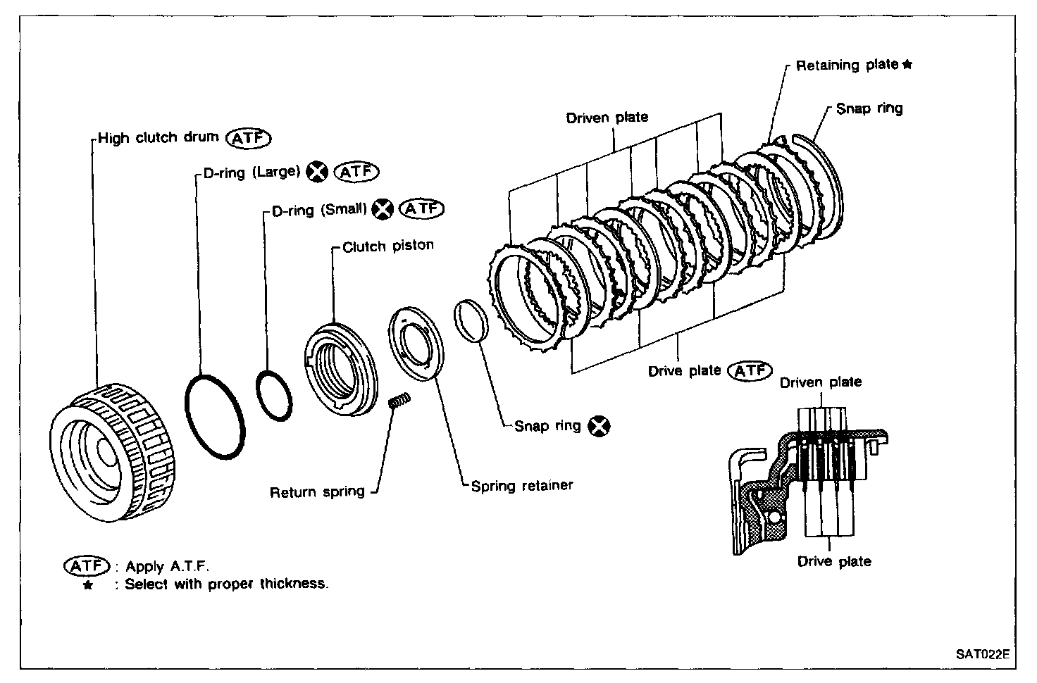 - Inspection of high clutch drive plate