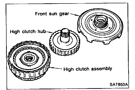 Service procedures for high clutch are essentially the same as those for reverse clutch, with the following exception: