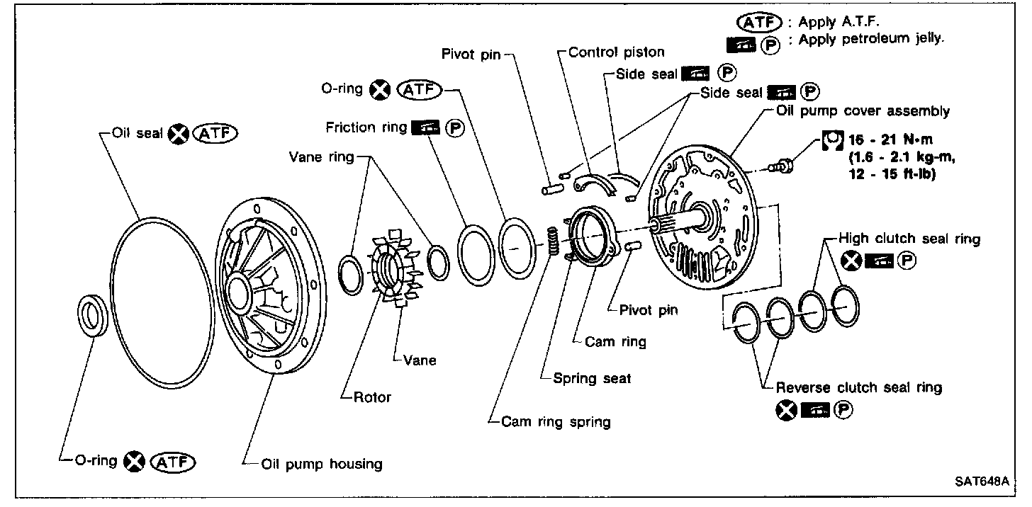 - Before measuring side clearance, check that friction rings, O-ring, control piston side seals and cam ring spring are removed.