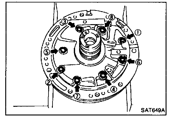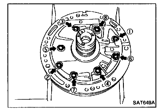 1. Loosen bolts in numerical order and remove oil pump cover.