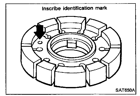 - Inscribe a mark on back of rotor for identification of fore-aft direction when reassembling rotor. Then remove rotor.