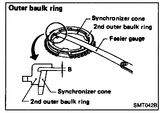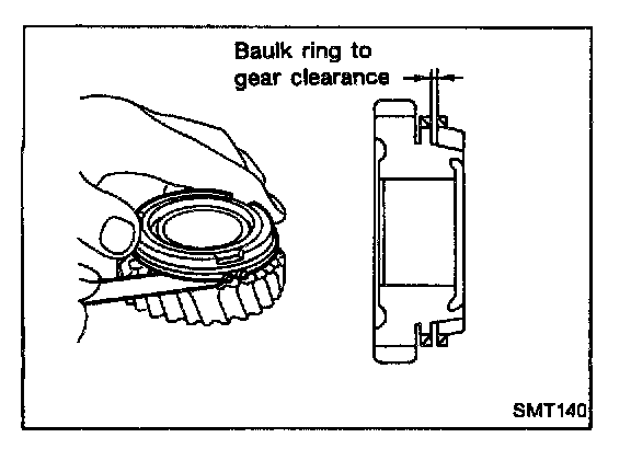 - Measure clearance between baulk ring and gear.