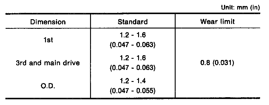 Clearance Between Baulk Ring And Gear - (1st, 3rd, Main Drive And O.D. Baulk Ring)::