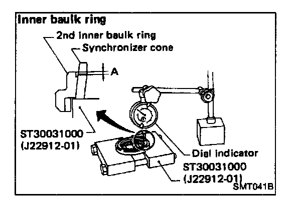 b. While holding baulk rings against synchronizer cone as far as it will go measure dimensions "A" and "B".