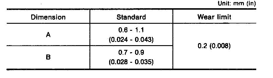 c. If dimension "A" or "B" is smaller than the wear limit, replace baulk ring.