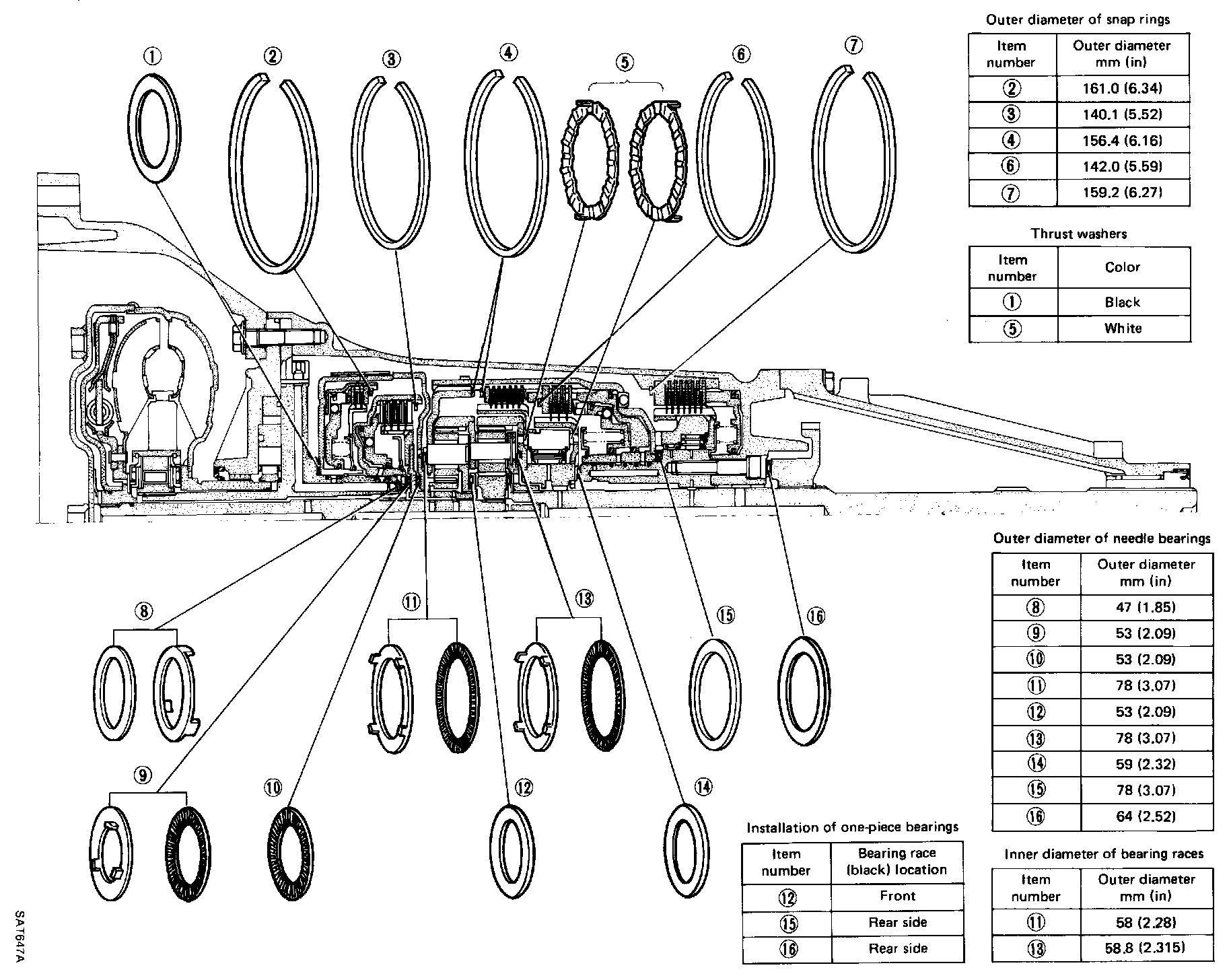 Locations Of Needle Bearings, Thrust Washers And Snap Rings: