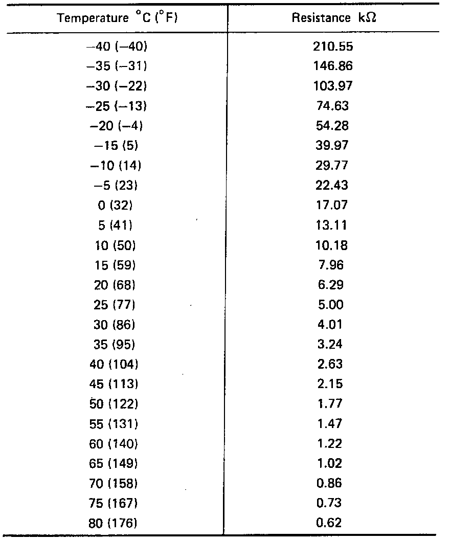 Refer to the chart for temperature and resistance values.
