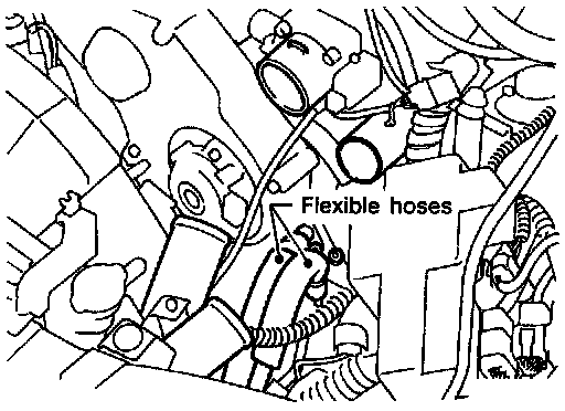 7. Remove two nuts to separate high and low pressure flexible hoses from compressor.