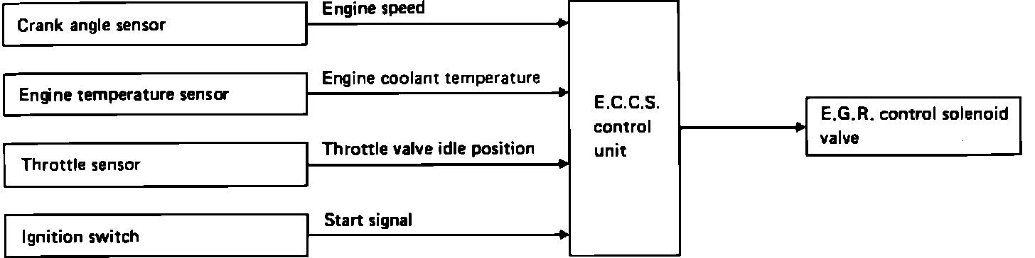 When conditions are NOT suitable for EGR operation, based on signals sent via the crank angle sensor, air flow meter, engine temperature sensor and the ignition switch, the ECU energizes the solenoid. Refer to EMISSION CONTROLS for further description of the EGR valve.