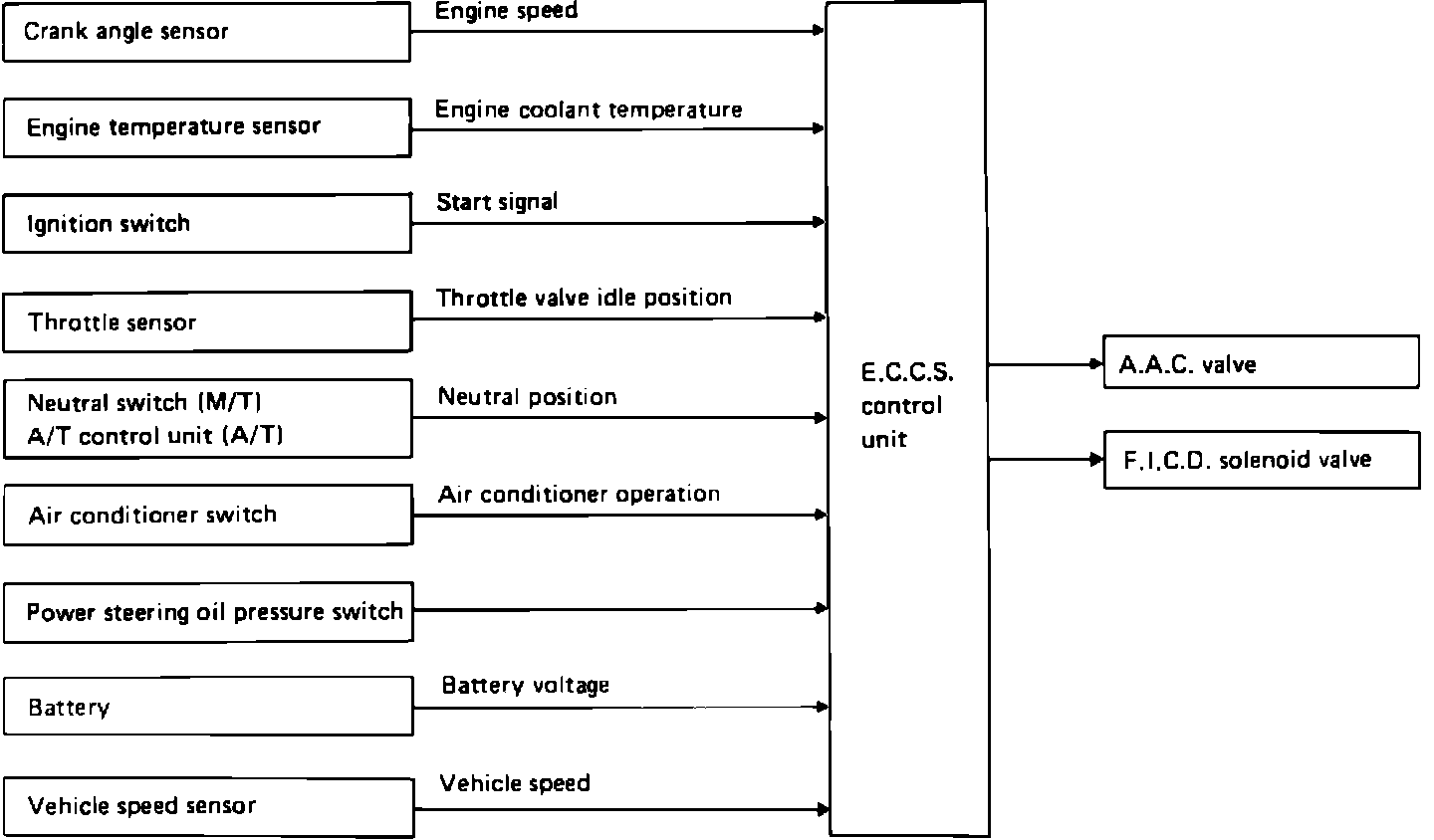 Two different devices, all part of the Idle Control System, are used to control engine idle. The devices are: