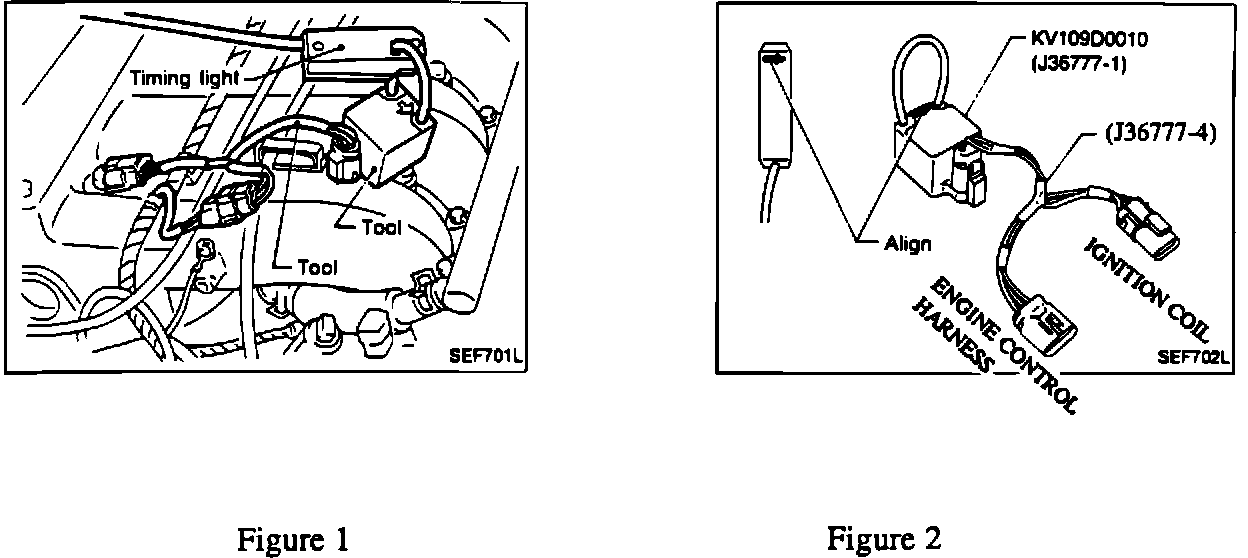 The 1990-94 300ZX (Z32) with VG30 Engine has a new shape power transistor harness connector on the ignition coil side (Figure 1). Evaluation of ignition timing on this vehicle requires a different Adapter Service Tool, P/N J36777-4 (Figure 2).