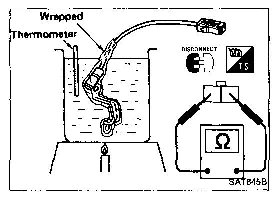 Check resistance between two terminals while changing temperature as shown.
