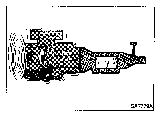 2. Warm up engine until engine oil and A.T.F. reach operating temperature after vehicle has been driven approx. 10 minutes.