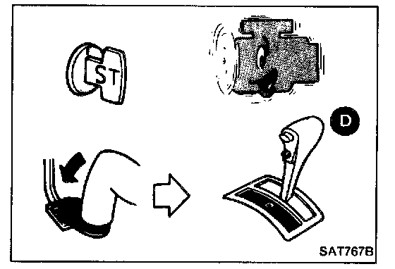 5. Start engine, apply foot brake, and place selector lever in "D" position.