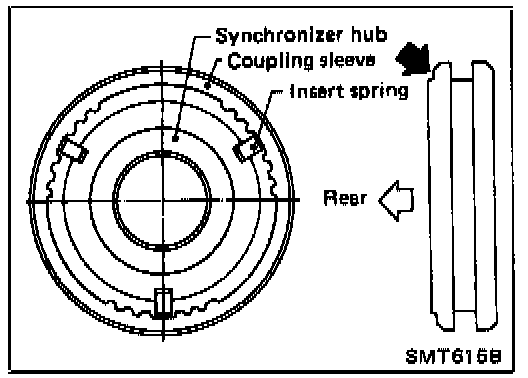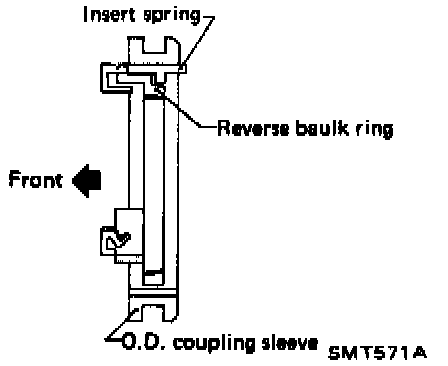 g. Install insert springs and reverse baulk ring on O.D. coupling sleeve. Then install them and O.D. baulk ring on O.D. counter gear.