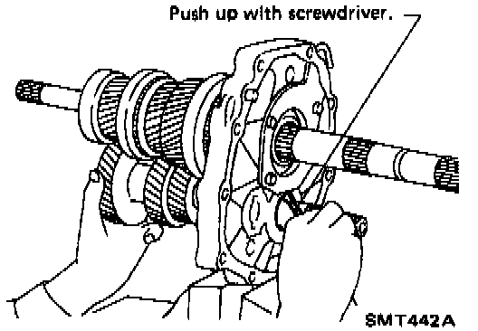 When Installing counter gear Into counter gear rear bearing, push up on upper roller of counter gear rear bearing with screwdriver.