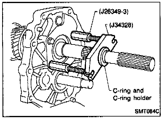 d. Install Tools (J26349-3) onto adapter plate and C-ring and C-ring holder on mainshaft.