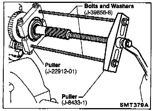 k. Pull out reverse gear bushing, speedometer, drive gear and steel ball.