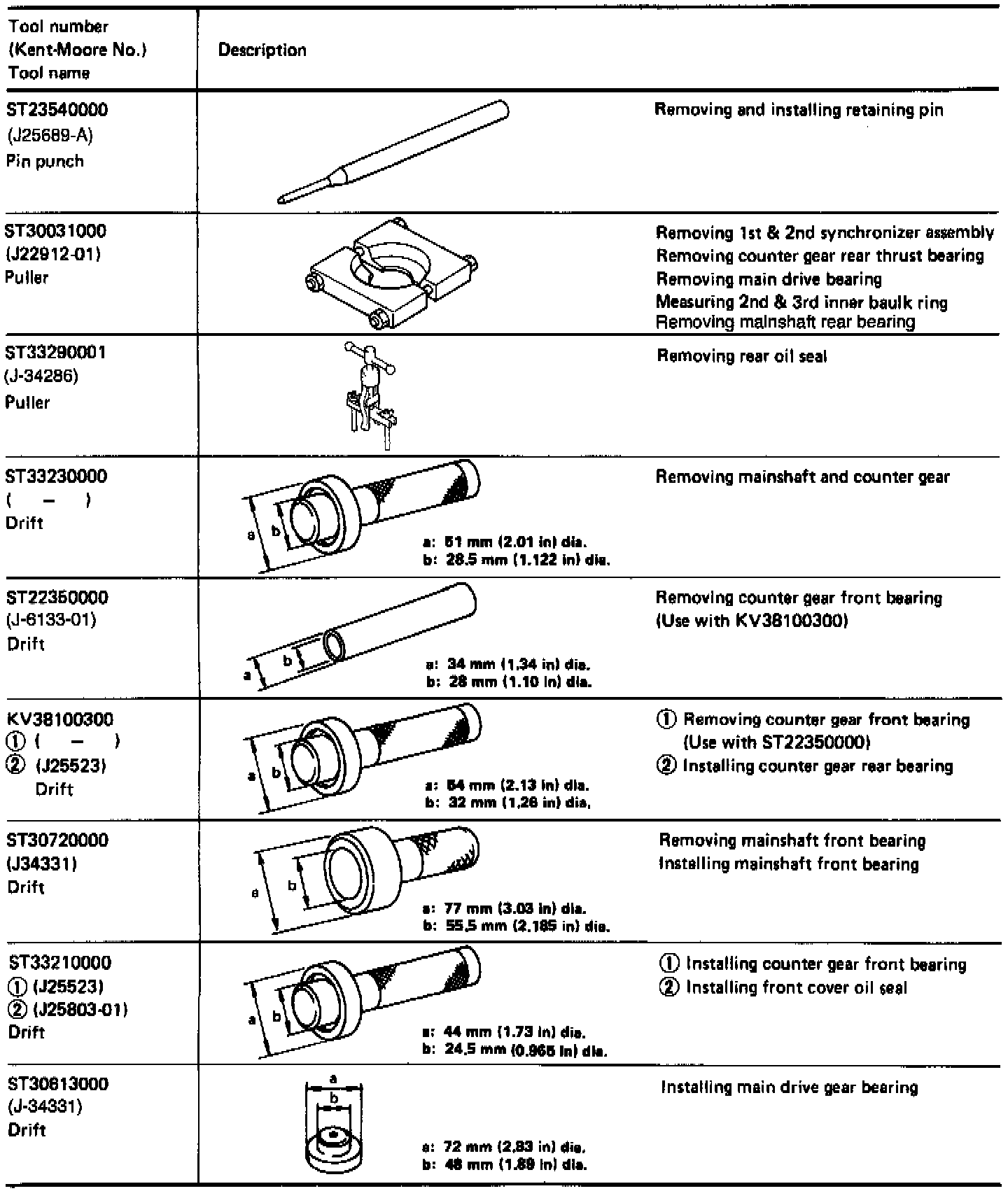This tool kit was specifically designed for the 1990 to current 300ZX transmission. However with minor differences the kit may be easily adapted to the other applied models with the same transmission.