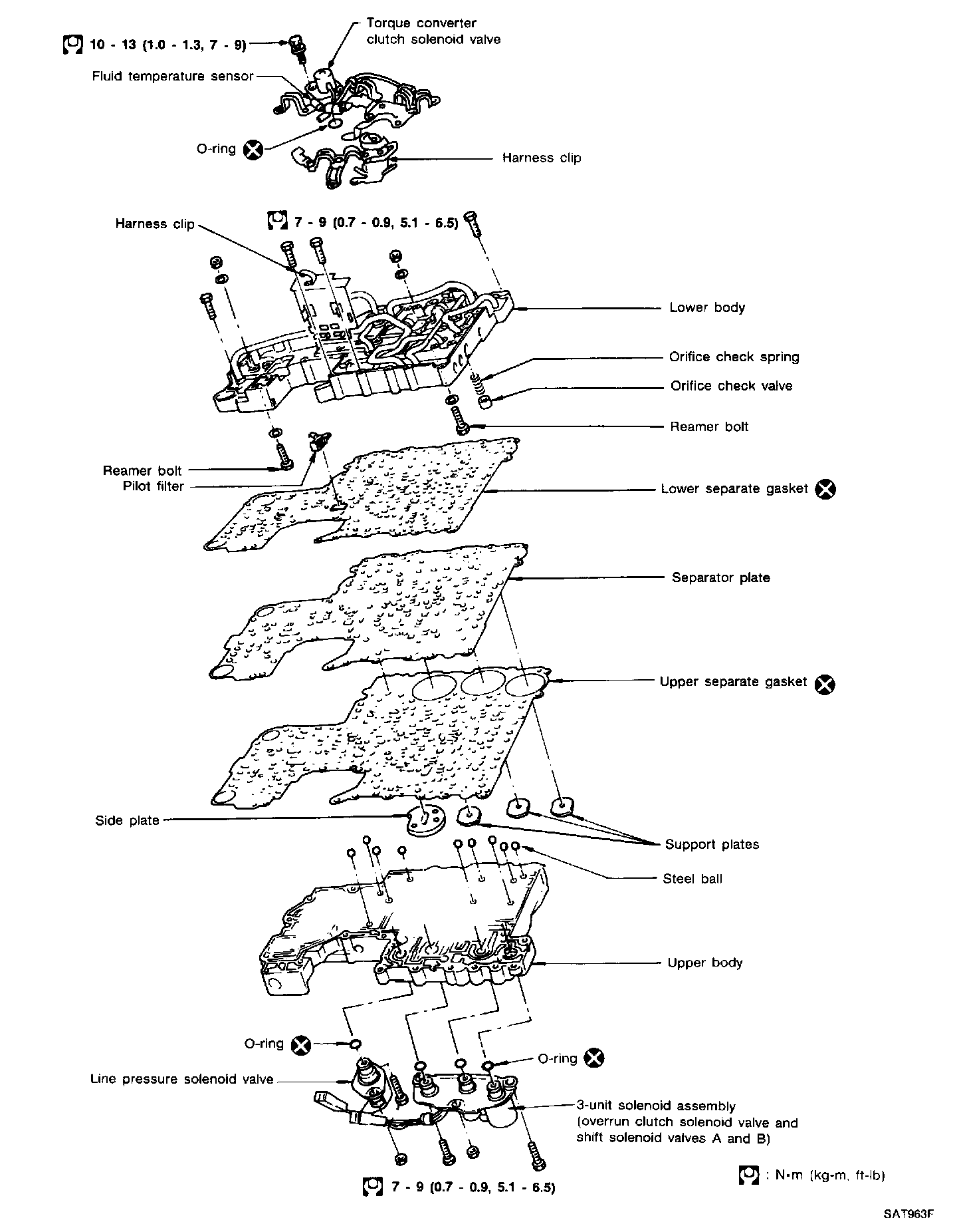 a. Remove torque converter clutch solenoid valve and side plate from lower body.