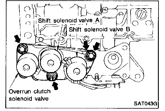 3-unit solenoid assembly (Overrun clutch solenoid valve and shift solenoid valves A and B)