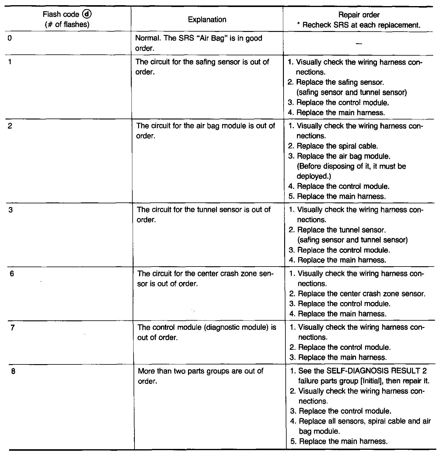 AIR BAG WARNING LAMP FLASH CODES AND REPAIRS: