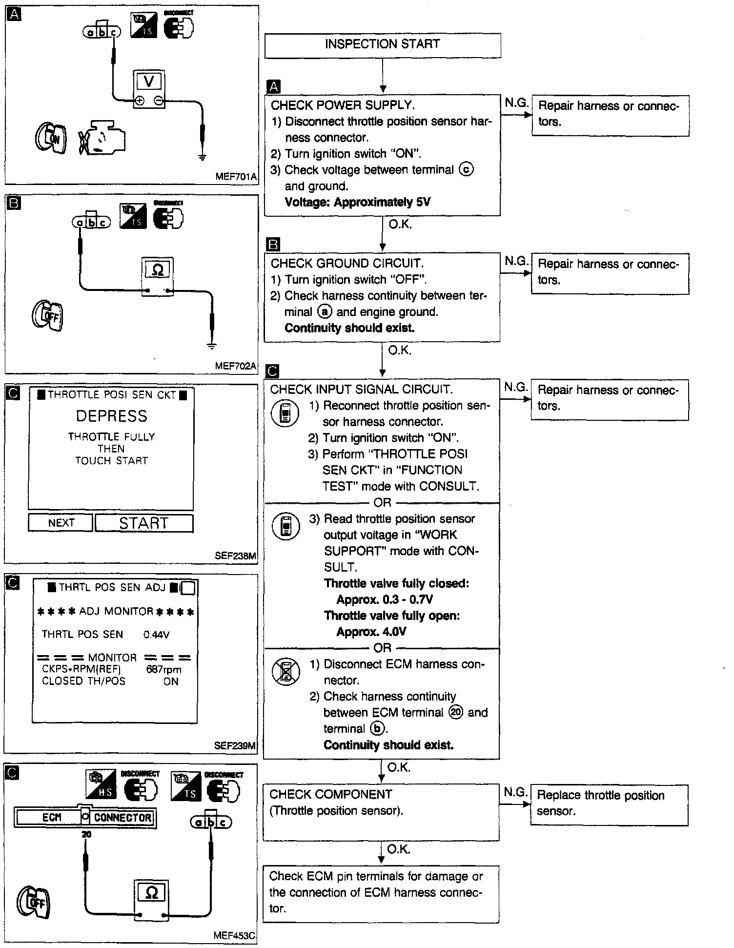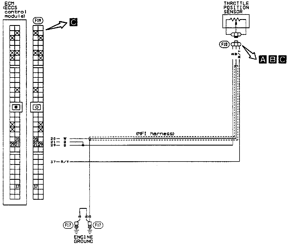 The ECU detected an open or short in the circuit.DTC 43 Throttle Position Sensor Diagnostic Chart: