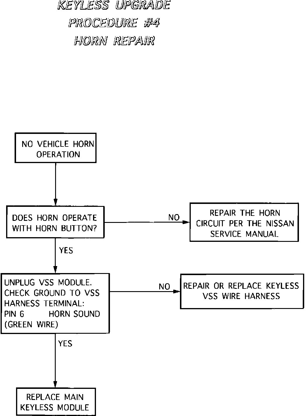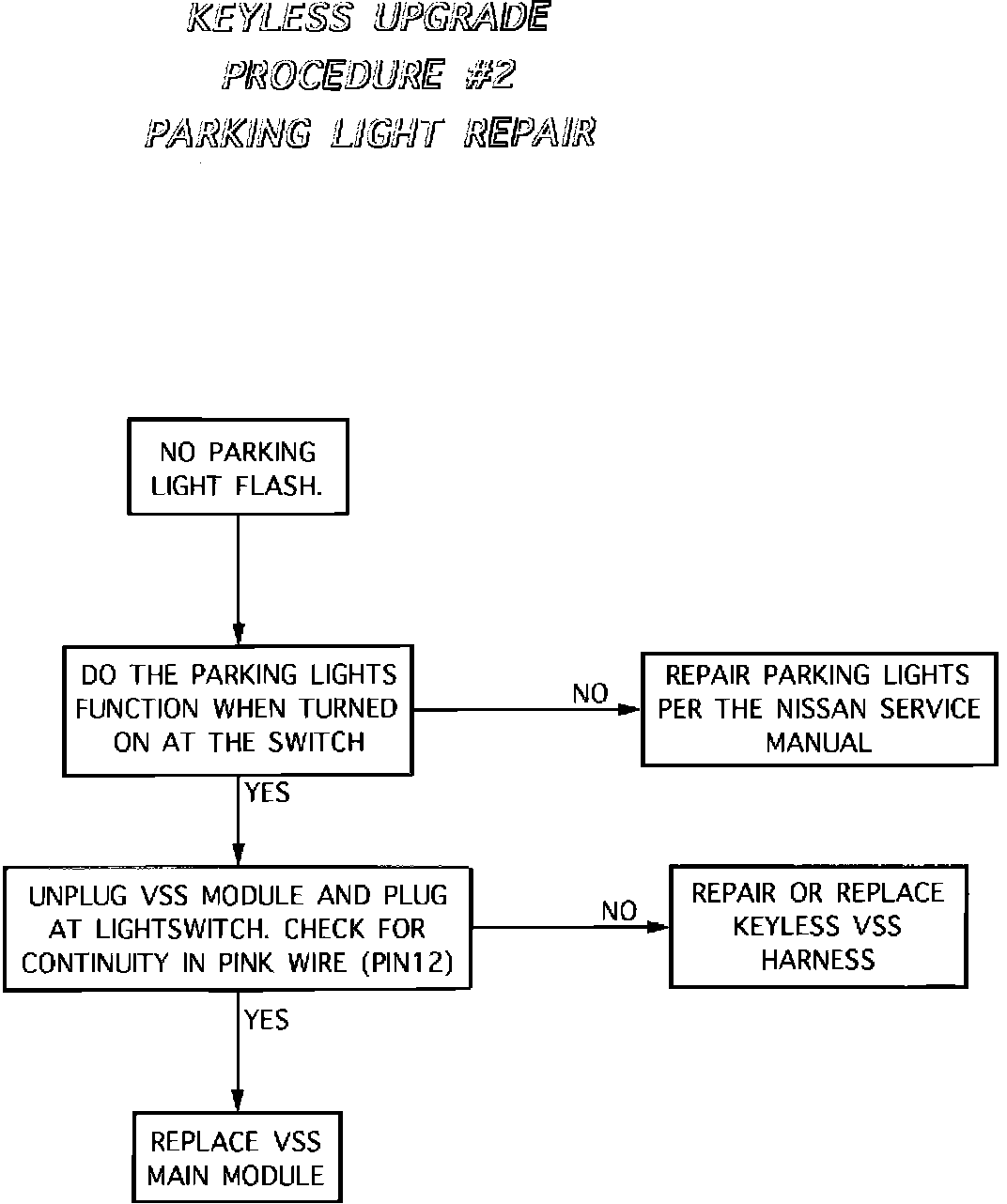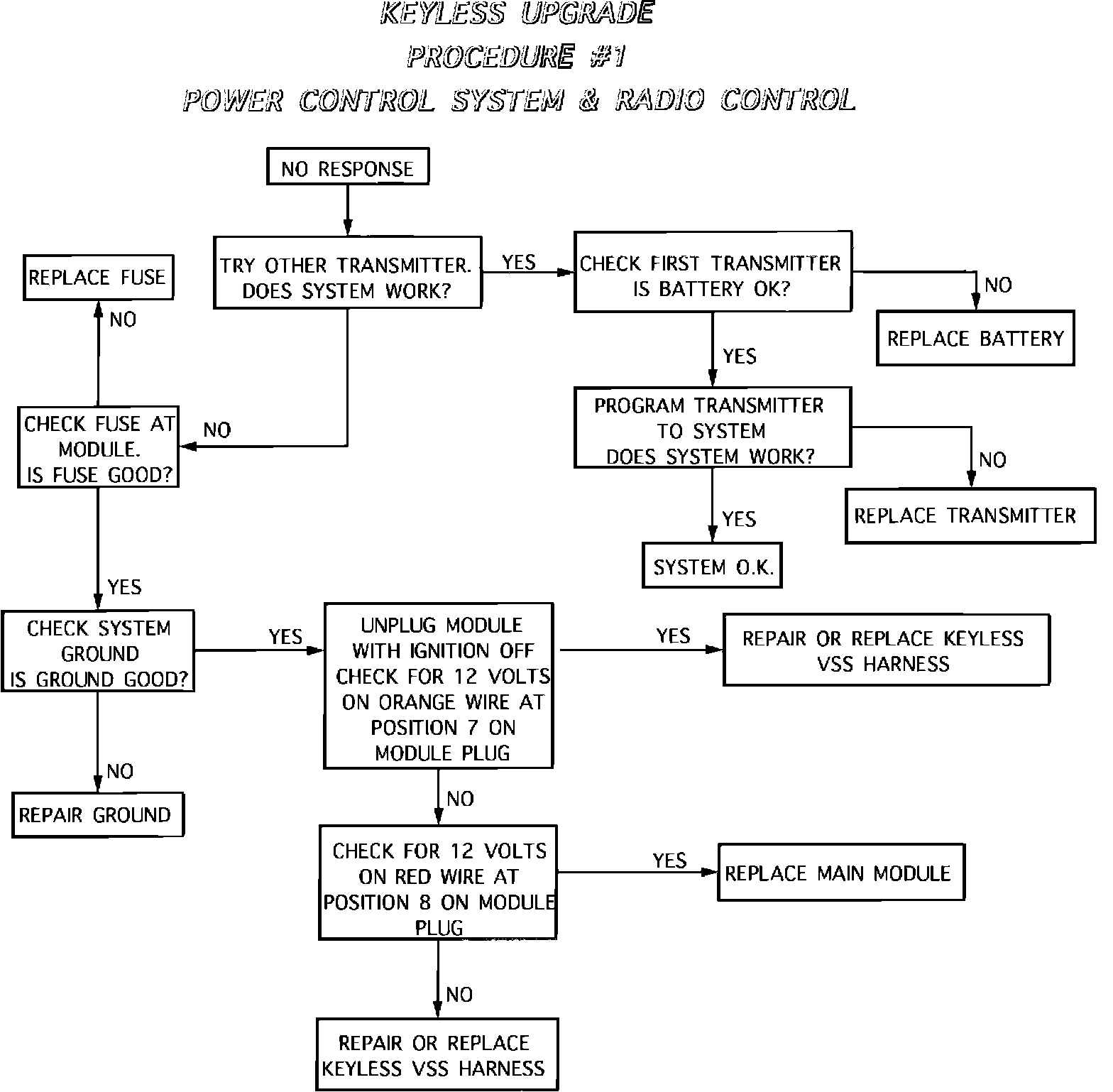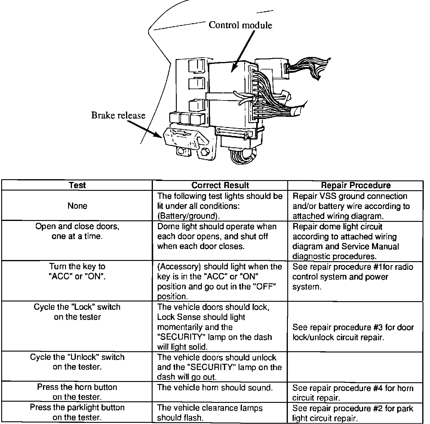 If the correct results listed above are not achieved, please refer to the following flow charts for further testing. Reconnect the control module and follow the first flowchart which will direct you to specific tests as necessary.