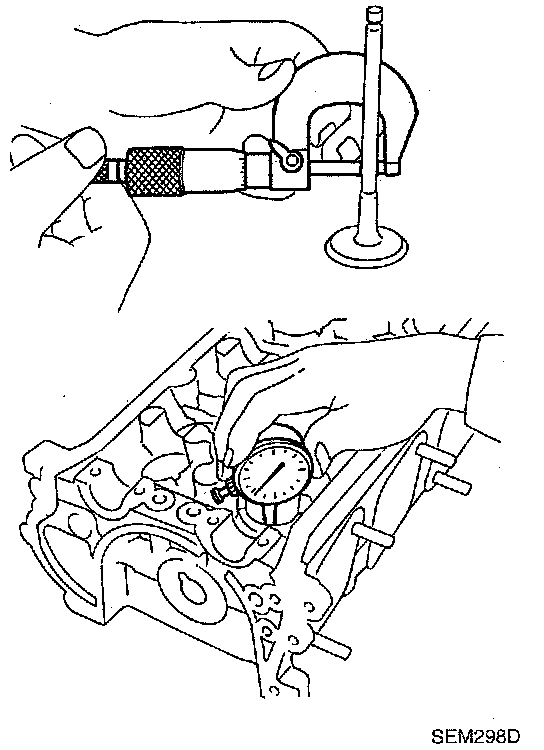 a. Measure valve stem diameter and valve guide inner diameter.