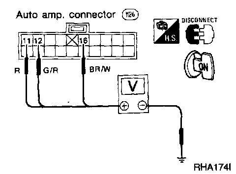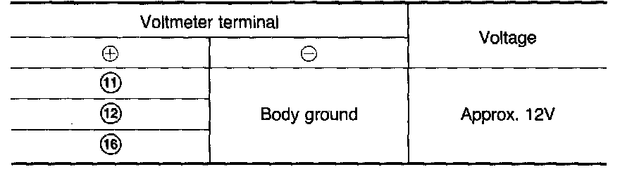 3. Measure voltage across terminal No. (11), (12), (6) and body ground.