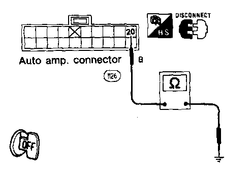 Check body ground circuit for auto amp. with ignition switch OFF.