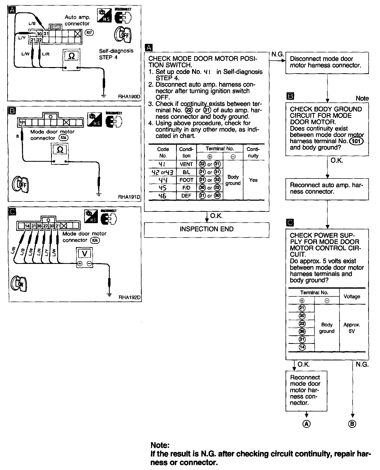 Mode door motor does not operate normally.