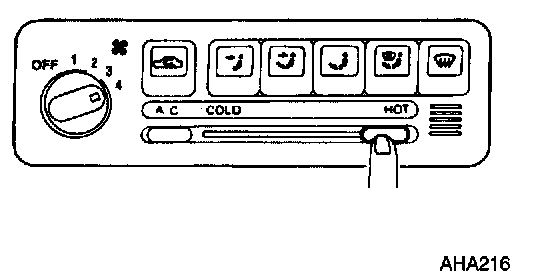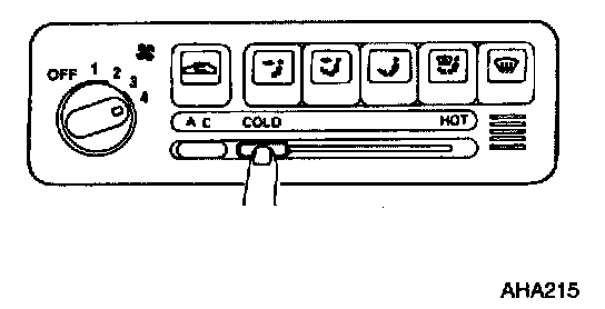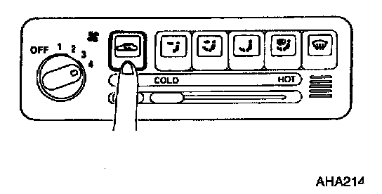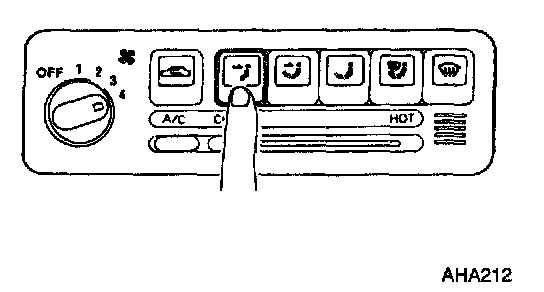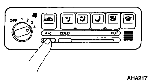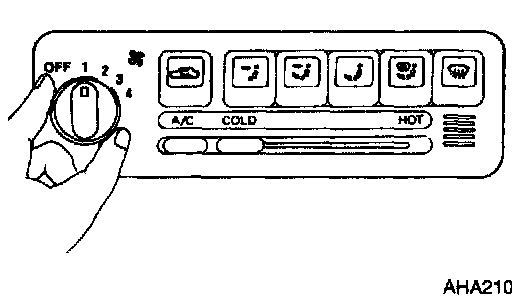 Move the fan control switch to the desired (1 to 4 speed) position and push the A/C switch to turn ON the air conditioning.