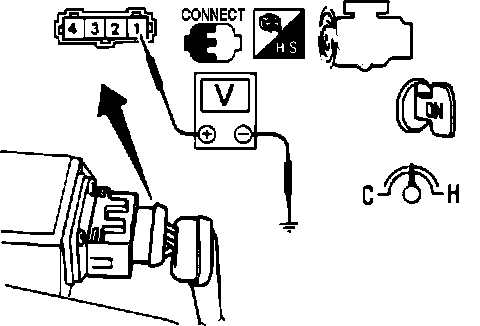 4. Using a volt meter, check voltages between terminal 1 and ground under the following conditions.