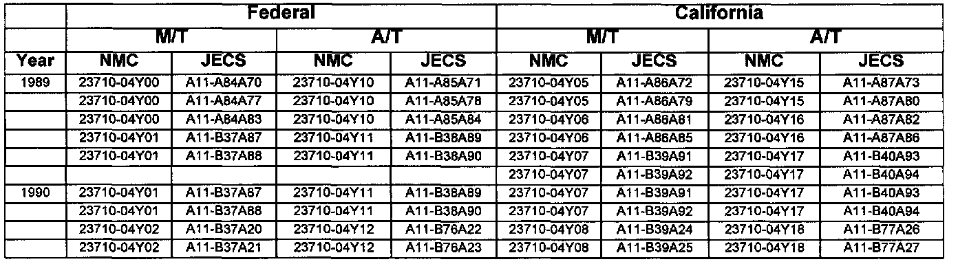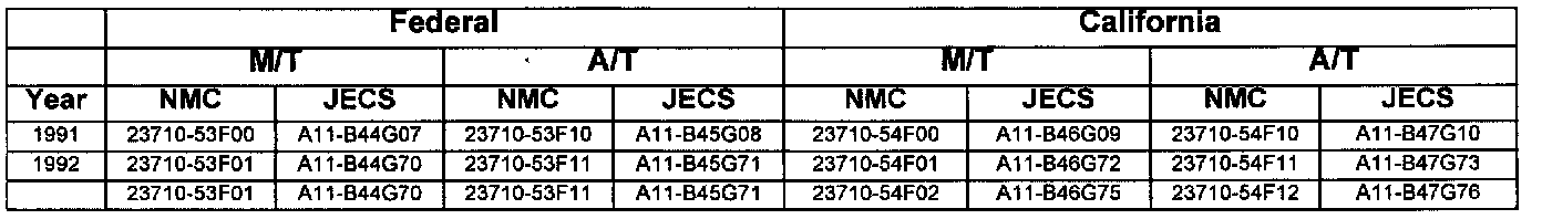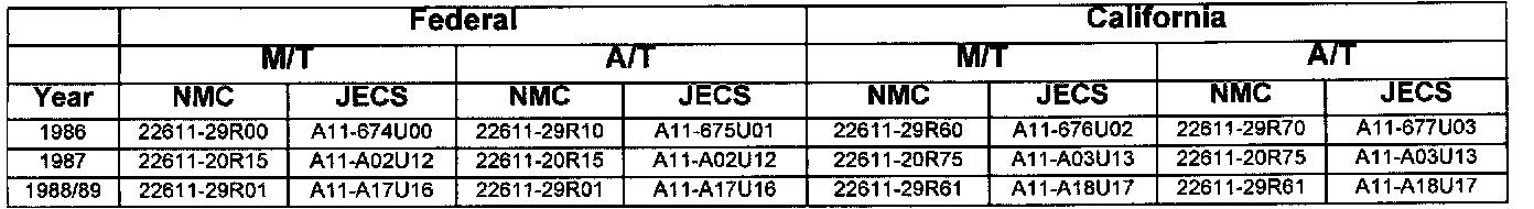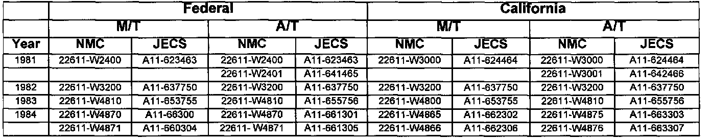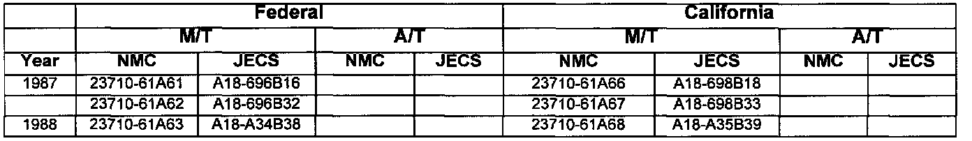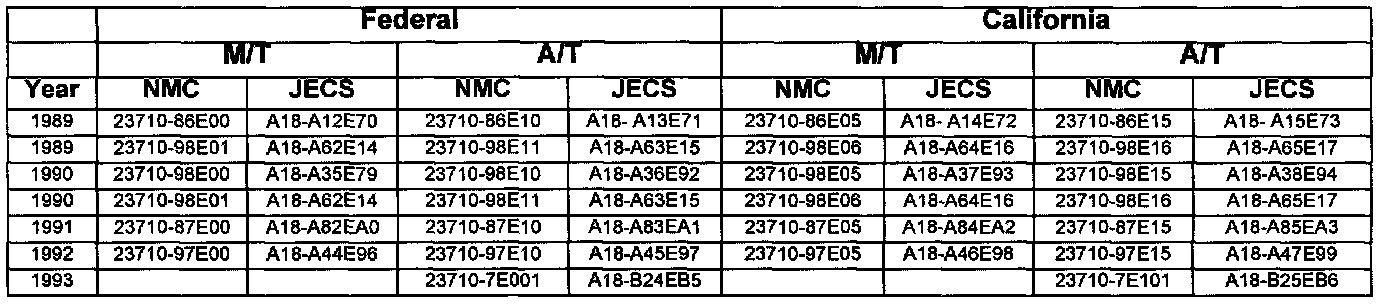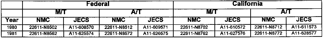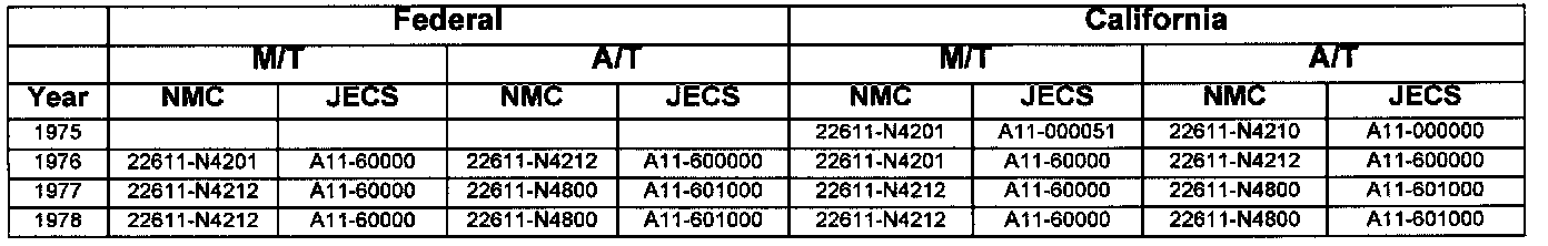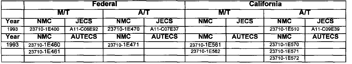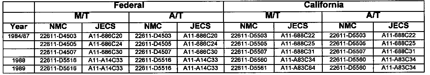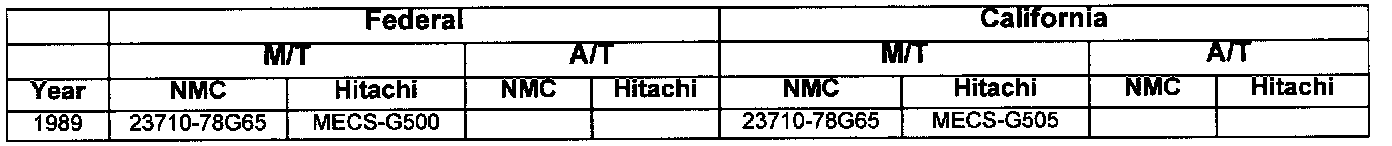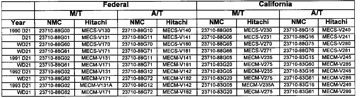 This bulletin contains a chart that lists the ECM Vendor serial number and cross-references to a Nissan part number. This chart is intended to be used as a reference guide to determine that a vehicle has the correct ECM installed in it. The parts catalog along with the VIN number and Date of Manufacture should be used to determine the correct part number when ordering a new ECM.