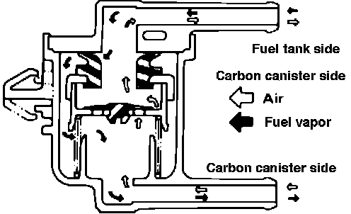 2. Blow air into the port on the canister side. Air should pass through to the other port with very little resistance. Replace valve if it fails above tests.