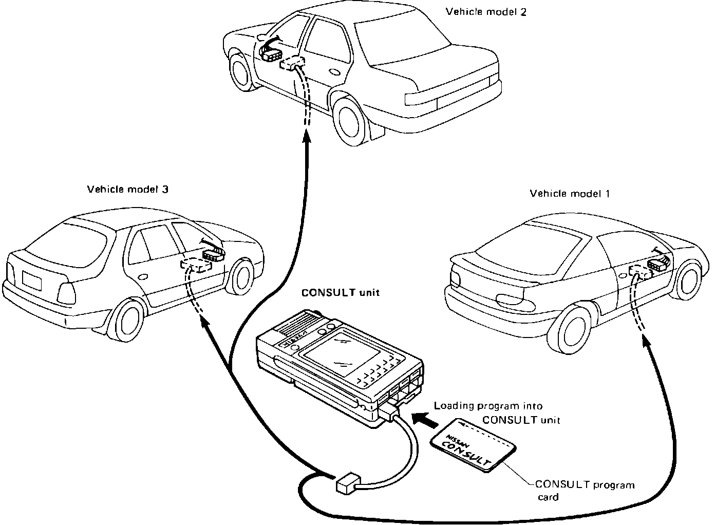 3. The CONSULT program card used to program the CONSULT unit has the applicable vehicle system information in it.