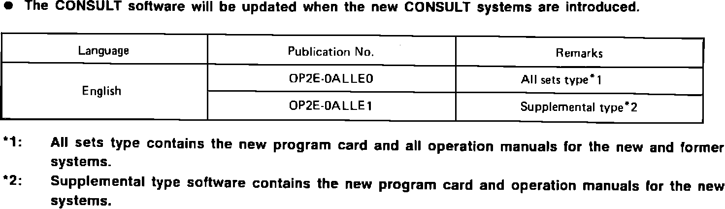 This Bulletin gives updated general information for CONSULT. When performing a diagnosis using CONSULT, refer to the CONSULT Operations Manual for each system and the appropriate Service Manual for each model.