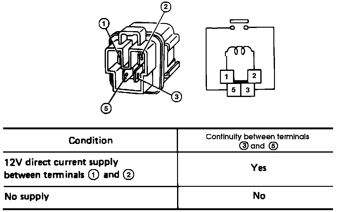 Apply voltage to the relay and check continuity as shown.