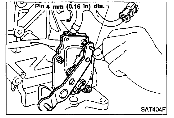 4. Insert pin into adjustment holes in both inhibitor switch and manual shaft as near vertical as possible.