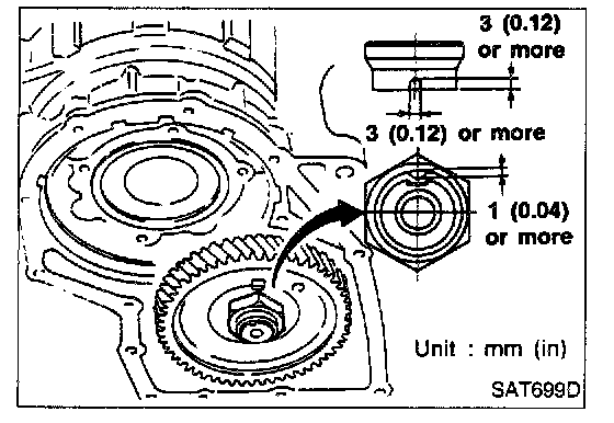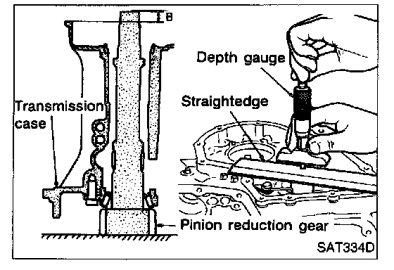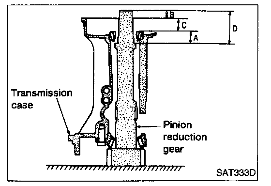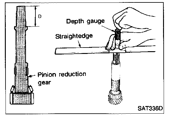 - Measure dimension "D" between the end of reduction gear and the adjusting shim mating surface of reduction gear.