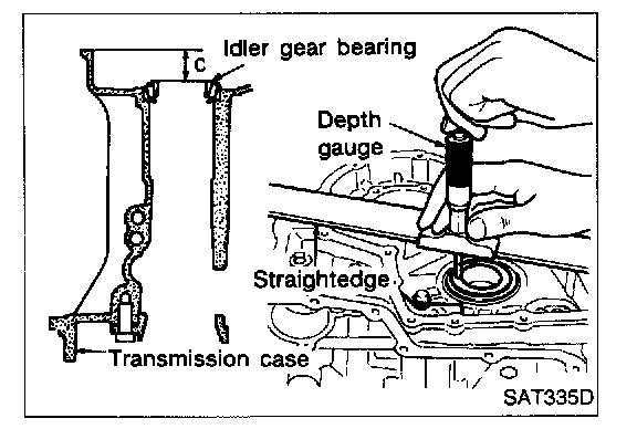 - Measure dimension "C" between the surface of idler gear bearing inner race and the surface of transmission case.
