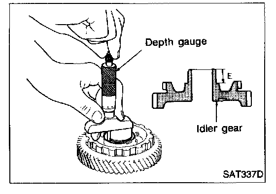 d. Measure dimension "E" between the end of idler gear and the idler gear bearing inner race mating surface of idler gear.